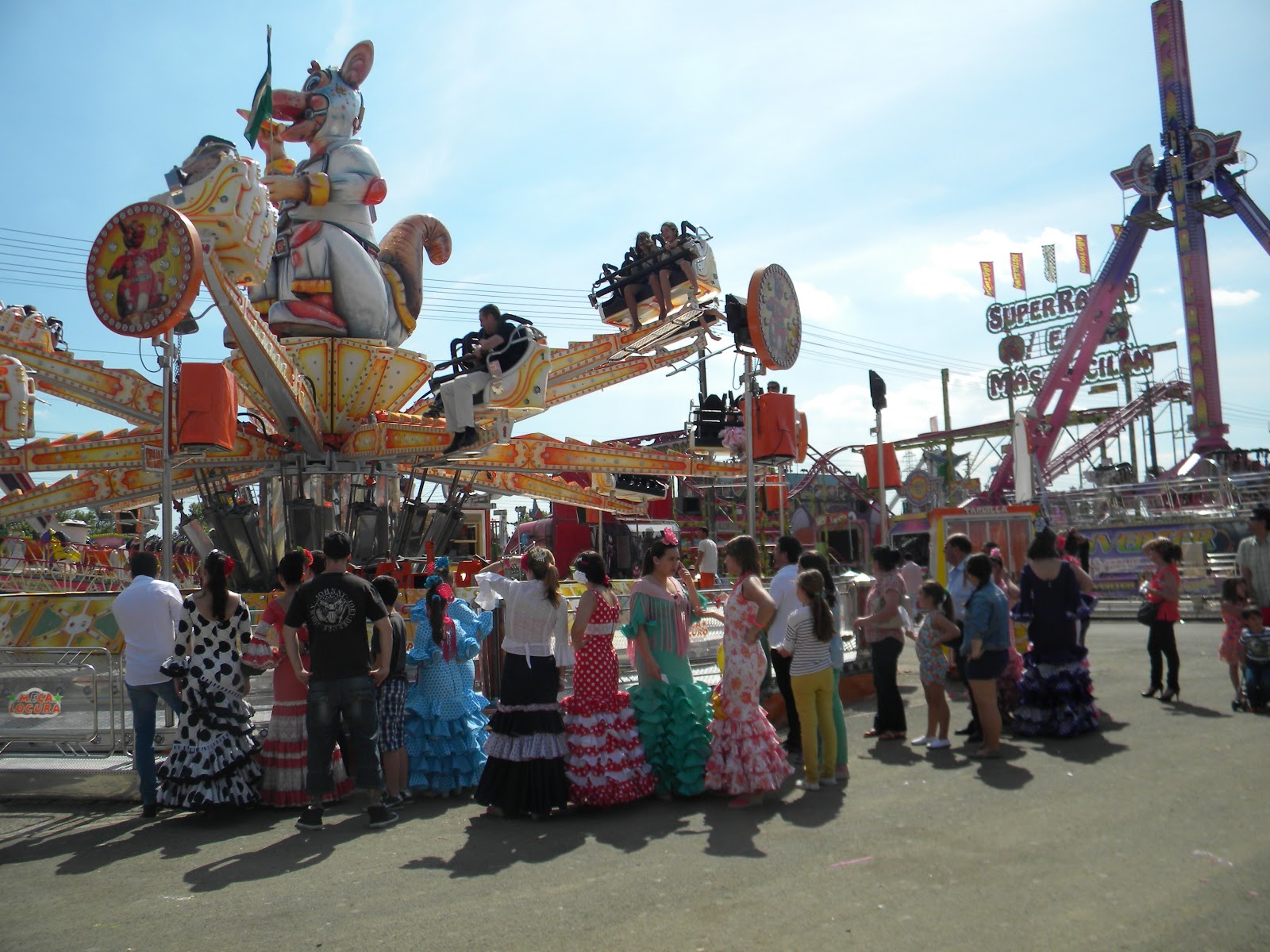 We all got dragged onto a ride called “Top Gun,” which flips you upside down multiple times and then sprays water on your face. Besides being ridiculously terrifying, it really offered a great view of the Feria. After that, I picked out the next ride I wanted to try out: Super Kangaroo. This is like a mega-scramber, except that it violently bounces you up and down. When I told my friend that was the one I wanted to ride, he shook his head disapprovingly.