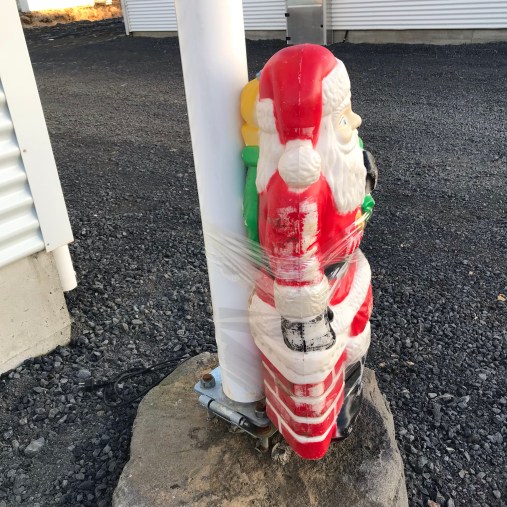 We arrived at the barn on the morning of our tour at 10 am, just as the sun was beginning to rise. The Solhestar stable was small at the end of a long gravel road lined with other stables. We pulled into the parking lot and parked next to a Santa Claus figurine heavily taped to a lamp post.